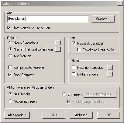 Nur die Programmversion für die Windowssysteme 95/98/ME lässt auch Konfigurationsmöglichkeiten des Hintergrundwächters zu. Für die Win NT/2000/XP Version wird das erst später vorgesehen sein. Eigentlich schade, denn der Anwender weiss so gar nicht genau, was der Hintergrundwächter überhaupt macht, welche Dateien geprüft werden und so weiter.