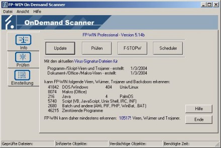 Wer einen einfach bedienbaren Virenscanner sucht, der obendrein auch noch wenig Ansprüche an die Systemleistung stellt, ist mit FP-Win sehr gut bedient. Hier wird aufgezeigt, dass ein Virenscanner nicht immer die ganze Geschwindkeit eines Betriebssystems in Mitleidenschaft ziehen muß.