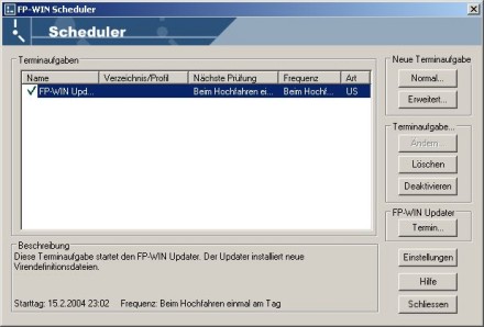 Dafür bietet der Scheduler (Zeitplaner) weitaus mehr Konfigurationsmöglichkeiten, wann bzw. in welchem Fall das Programm was tun soll. Das gilt nicht nur für die Updatefunktion, sondern auch was andere Aufgaben (Suche nach Viren etc.) angeht. Im unteren Beispiel haben wir mal die Update - Funktion so eingestellt, dass bei einem Systemstart einmal täglich nach Updates im Internet gesucht wird. Die Updatefunktion kann jedoch sehr individuell den Bedürfnissen der Anwender angepasst werden.